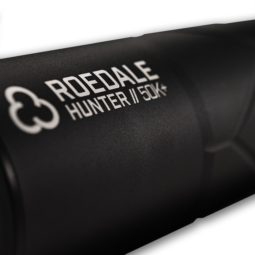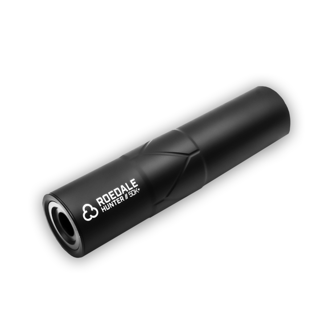 Roedale Hunter 50K+ har något större volym och dämpar ännu mer än Hunter 45S+. K:et i modellbeteckningen betyder att dämparen är extra kort och med sina blotta 205 mm adderar den endast 128 mm längd till vapnet. Den otroliga dämpningen, beroende på kaliber reduceras ljudet upp till 38 dB, kombinerat med det kompakta formatet har gjort Hunter 50K+ till en favorit på den tyska marknaden.
