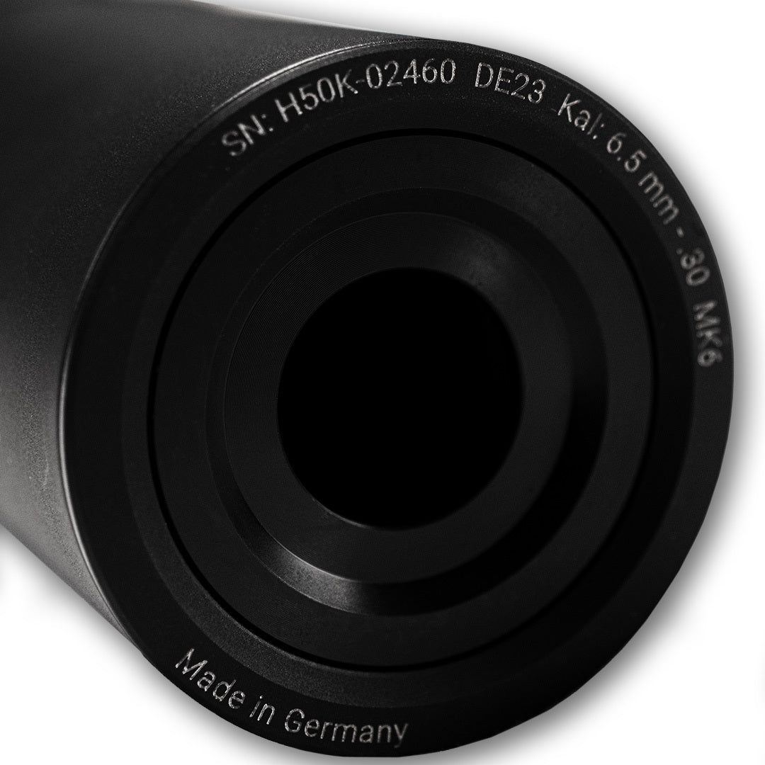 Hunter 50K+ är en riktigt bra allrounddämpare som passar alla standardkalibrar och olika jaktformer där maximal ljudreducering är viktig. Ljuddämparen är tillverkad av hårdanodiserad aluminium och plustecknet i namnet betyder att ljuddämparen har ett integrerat mesh filter i rostfritt stål. Detta stålfilter reducerar ljudet ytterligare ca 3 dB och ger en dämpare med extremt hög dämpning givet sitt kompakta format. Detta stål mesh hjälper också till att filtrera bort ljud i hög frekvens vilka är särskilt skadliga för hörseln.