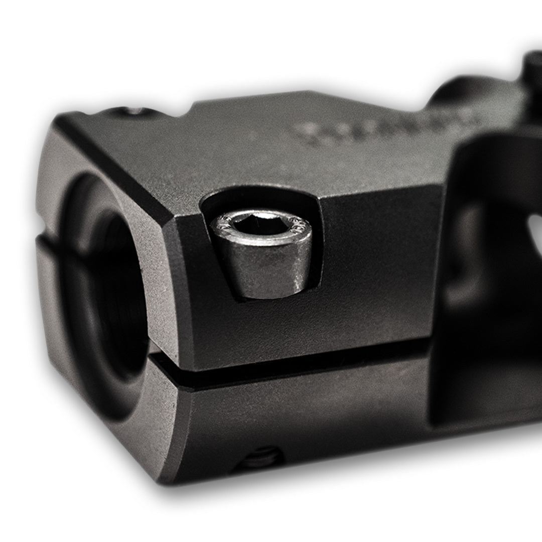 Skruvas på pipan och stabiliseras sedan ytterligare med hjälp av två medföljande skruvar.