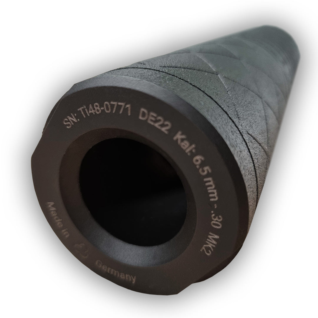 Ti48 är den mest populära ljuddämparen ur Roedales Titanium 3D serie. Ljuddämparen, som är 3D-printad i titan, imponerar med sin tillförlitlighet och höga prestanda oavsett jaktsituation.