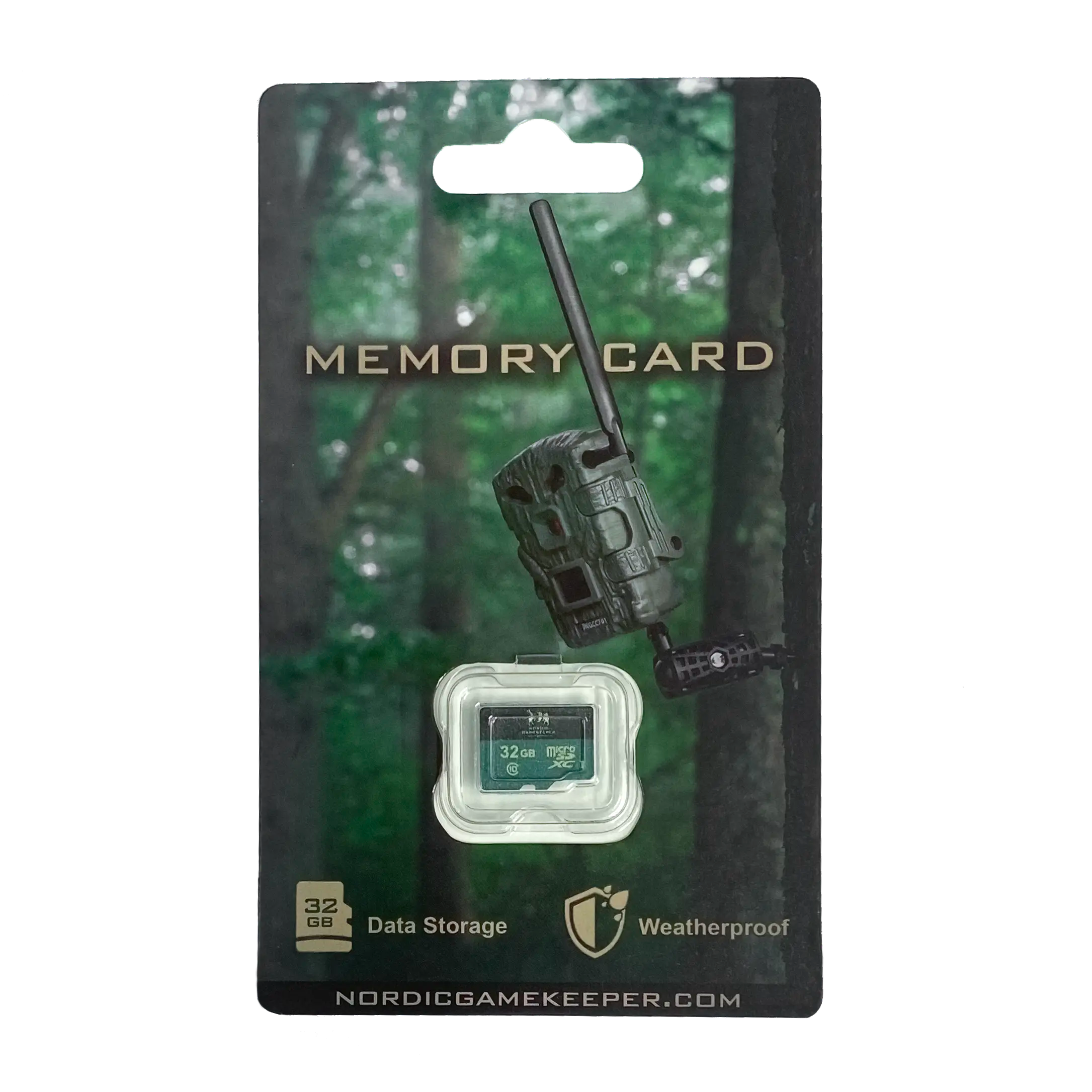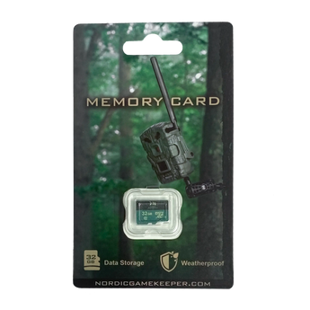 Minneskort för åtelkamera med 32 GB lagringskapacitet anpassad för högupplösta bilder och video.